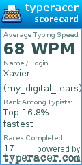 You can place this image anywhere on the web (your blog or Facebook, for example). It will update automatically with your new score each time you complete another race.